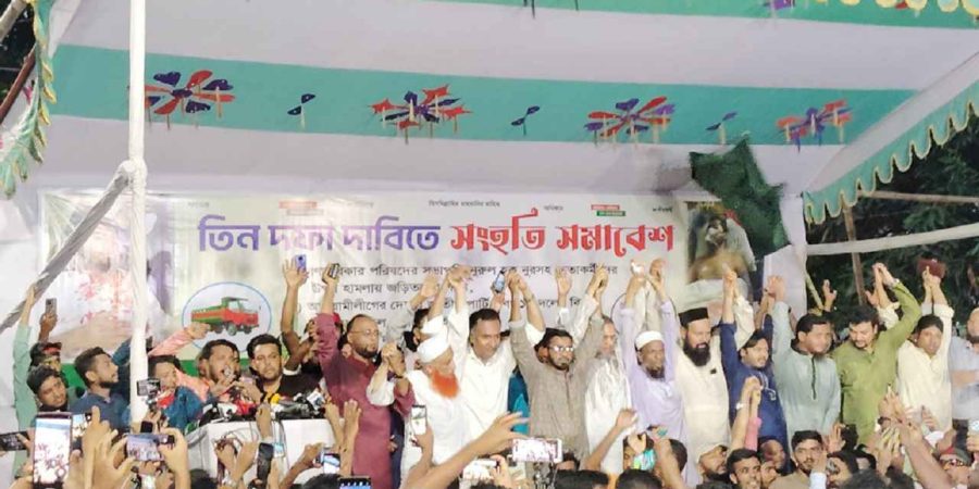 এতে বিএনপি, জামায়াত, এনসিপি, ইসলামী আন্দোলন, জেএসডি, বিপ্লবী ওয়ার্কাস পার্টি, গণসংহতি আন্দোলন, এবি পার্টি, খেলাফত মজলিসসহ ফ্যাসিবাদ বিরোধী ৩০টির বেশি রাজনৈতিক দল সংহতি জানায়।