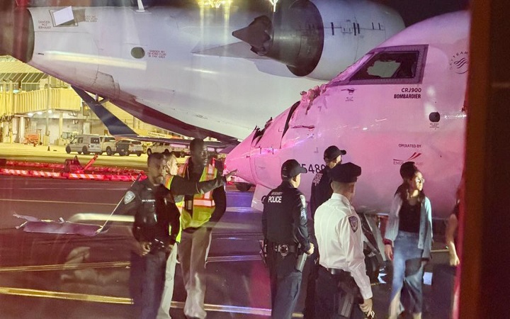 যুক্তরাষ্ট্রের নিউইয়র্ক সিটির লা গুয়ারিদা বিমানবন্দরে দুটি যাত্রীবাহী জেট উড়োজাহাজের মুখোমুখী সংঘর্ষ হয়েছে। এতে একটি বিমানের ককপিটের জানালা ভেঙে গেছে, সামনের অংশ বা ‘নাক’ দুমড়ে গেছে; তবে হতাহতের কোনো ঘটনা ঘটেনি।