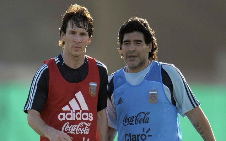 ২০০৮ থেকে ২০১০ সাল পর্যন্ত আর্জেন্টিনা জাতীয় দলের কোচও ছিলেন মারাডোনা। সেই সময় দক্ষিণ আফ্রিকা বিশ্বকাপেও তাঁর অধীনে খেলেছিলেন মেসি। এনবিসিকে মেসি বলেন, “আমাদের আর্জেন্টাইনদের জন্য মারাডোনা ছিলেন সবচেয়ে বড় আইডল, সবচেয়ে বড় অনুপ্রেরণা। ছোটবেলায় তাঁকে লাইভ খেলতে দেখেছি। তিনি শুধু ফুটবলে নয়, সবকিছুতেই ছাপ রেখে গেছেন।”