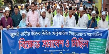 পাঁচ দফা দাবি ও পিয়ার পদ্ধতিতে নির্বাচনের দাবিতে সাতক্ষীরা জামাতের বিশাল বিক্ষোভ মিছিল ও সমাবেশ